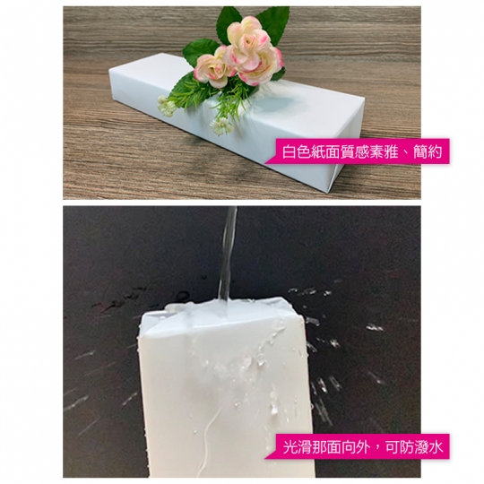 白色紙面質感素雅、簡約,也相當適用於文創品、花藝品包材
